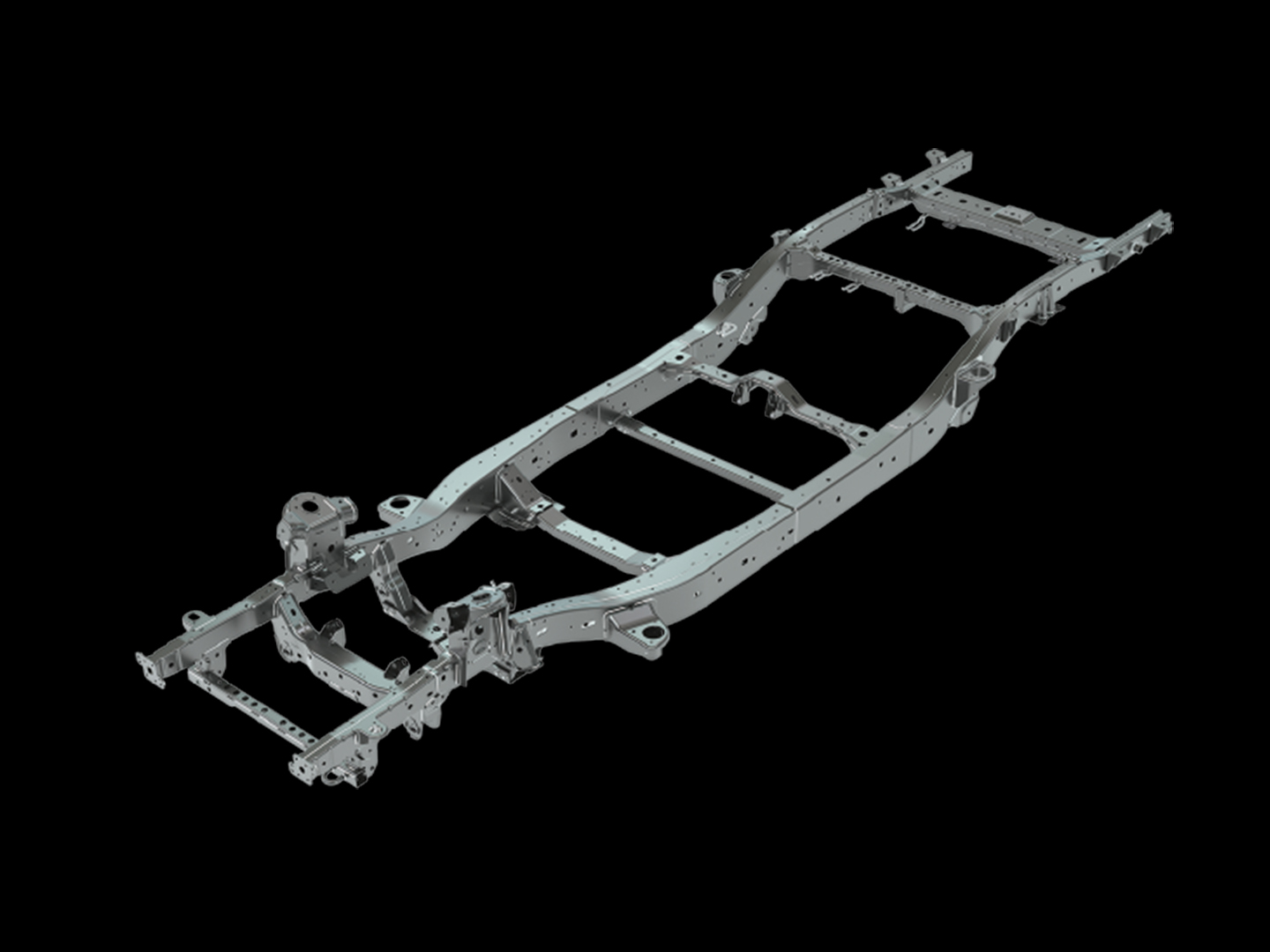 • Khung gầm Dmax Prestige được gia cường với dầm dọc kích thước lớn và nhiều điểm liên kết giúp tăng độ cứng xoắn, giữ thân xe ổn định khi chở hàng hoặc đi đường xấu.